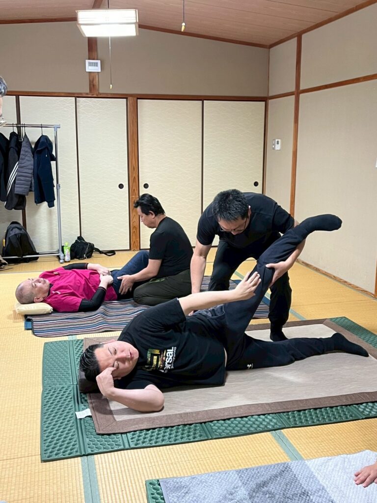 「骨絡筋膜操法」が今回のテーマで、不調箇所の真の原因を筋膜の繋がりをたどって行きながら探してゆく感覚は、繊細で難しかったですが、推理小説の犯人捜しにも似ており、夢中になってあっという間に時間が過ぎました。